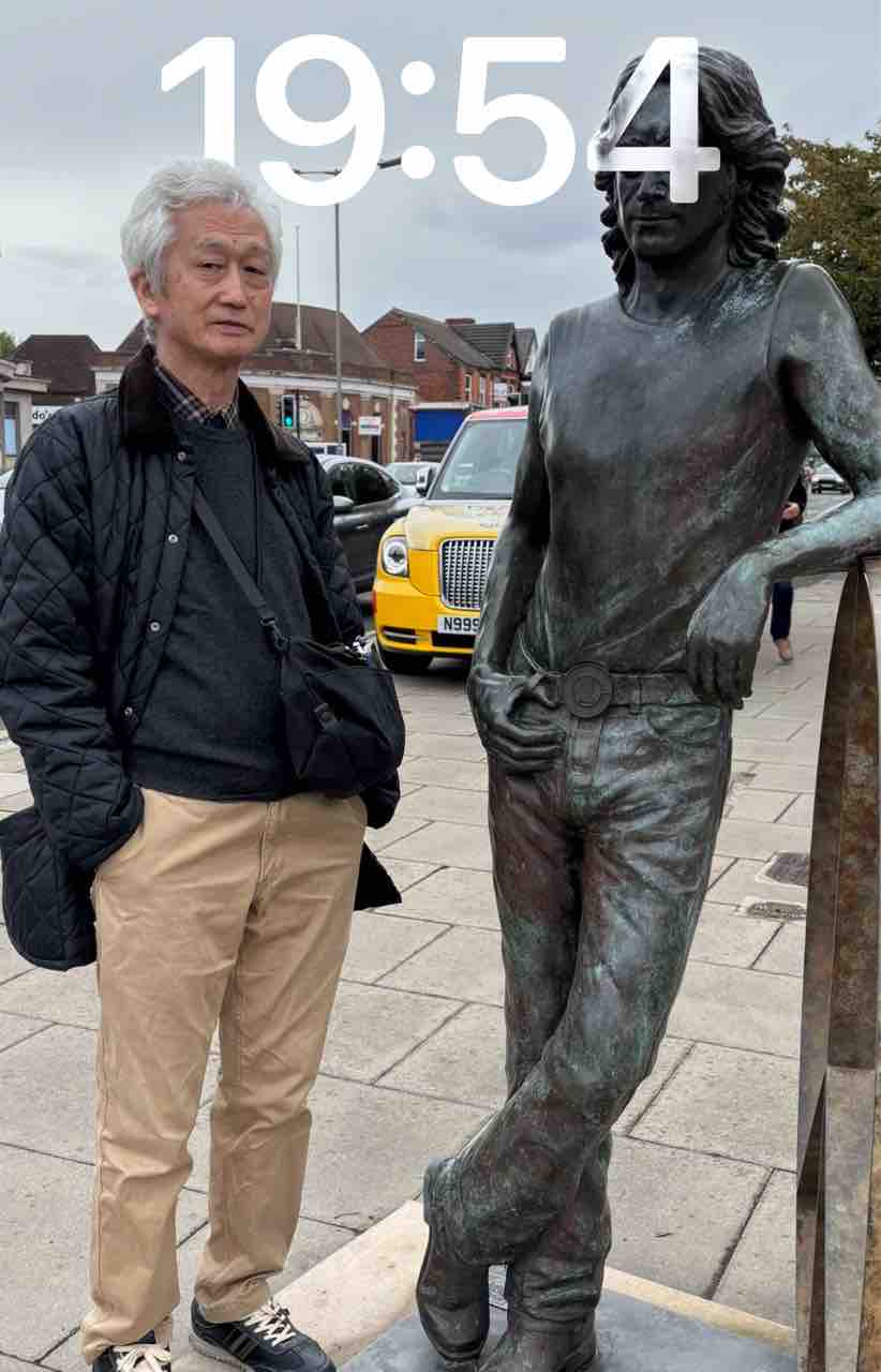 昨日のiPad「待ち受け」写真に続いて、今日の「待ち受け」ネタはiPhone、同じくイングランド旅の写真。Penny Lane の Roundabout(米技ではRotary)横のジョンの銅像、背景に「ビートルズ・タクシー(我々は乗ってない)」