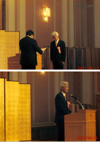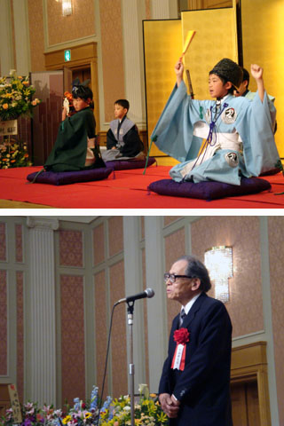 先日出席した俳句結社の式典の写真が、主催者から届いた。感謝状をいただき、来賓として祝辞をしたのだが、現地でいきなり話すことを言われた。