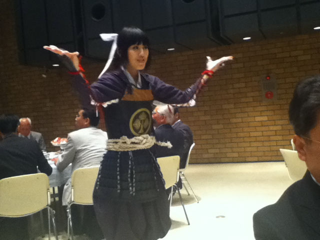 商工会議所議員総会のあとの懇親会のアトラクションは、グレート家康公「葵」武将隊。