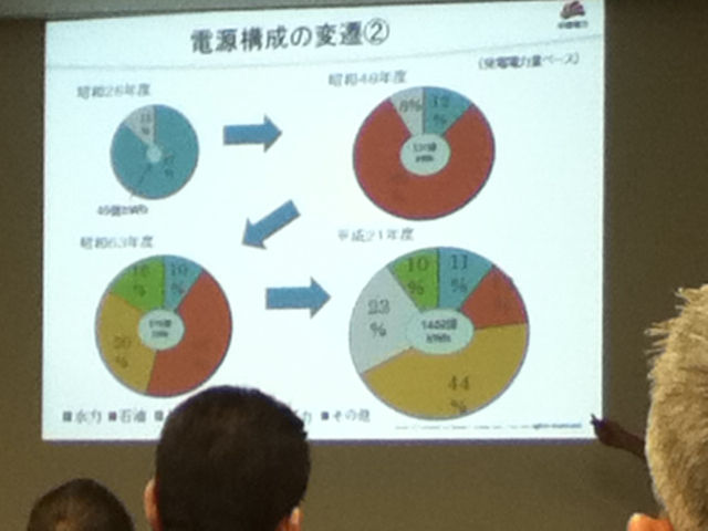 話は、中部電力および当地の発電・電力供給の話から、浜岡原発の運転停止に及んだ。