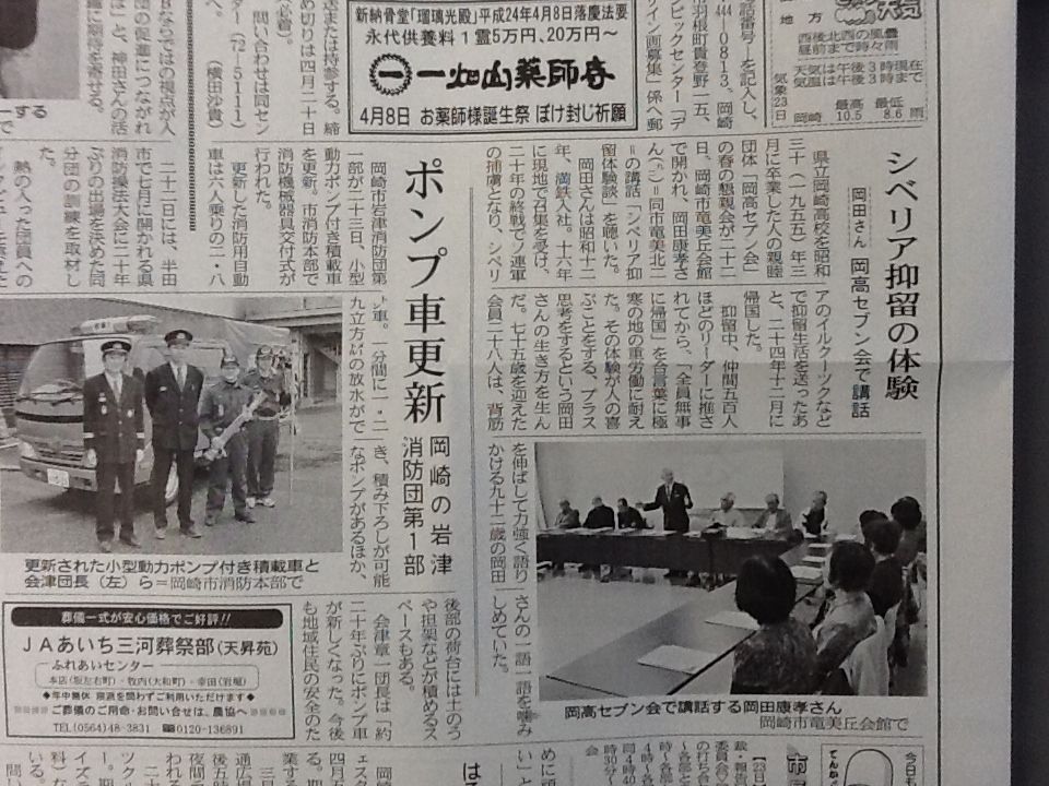 今朝の朝刊(というかもう昨日か)に乗ってたウチの元会長、私の叔父だ。