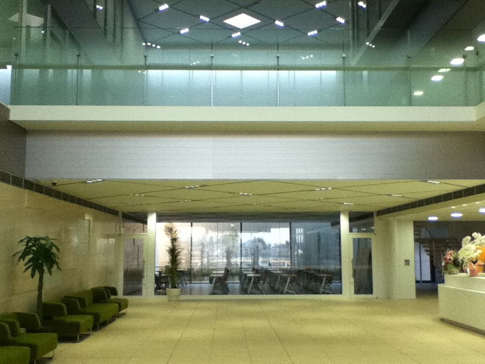 開放感のあるロビー、充実の健康診断施設、落ち着いたデザインの空間を創っている。