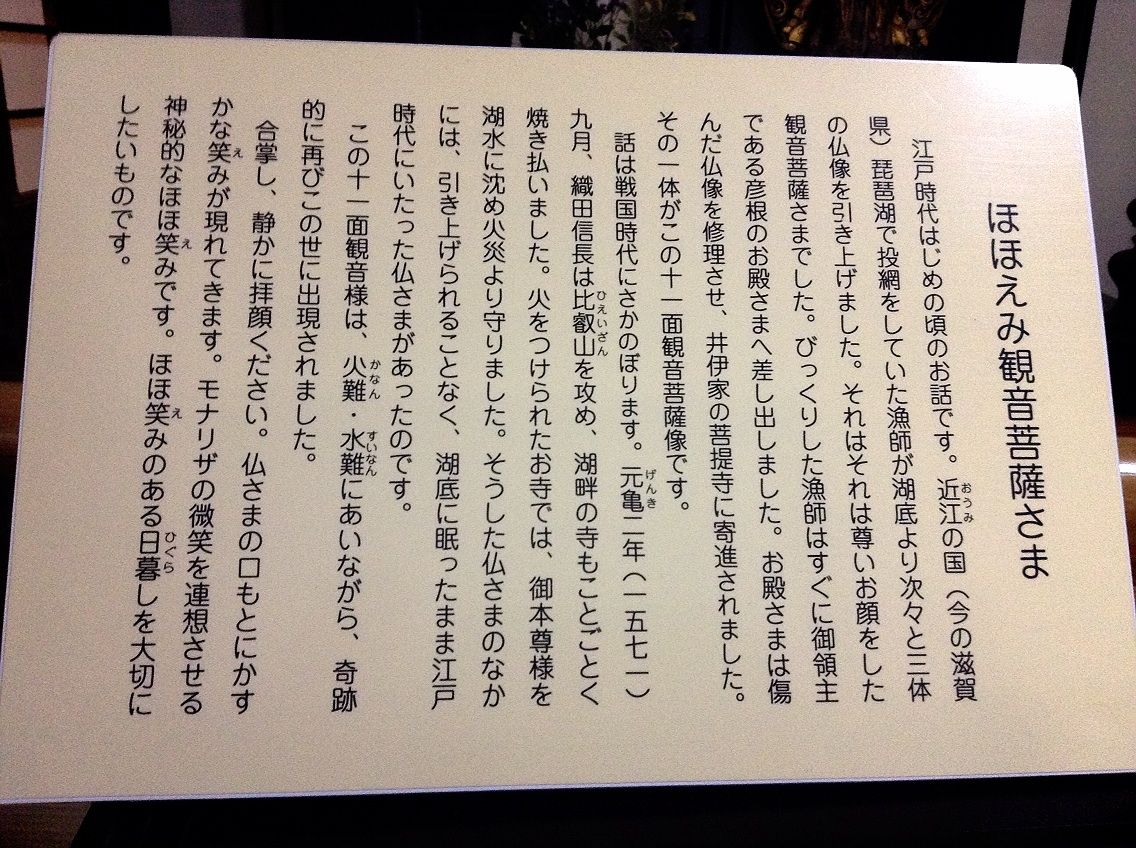 龍潭寺にある十一面観音像、別名ほほえみ観音。