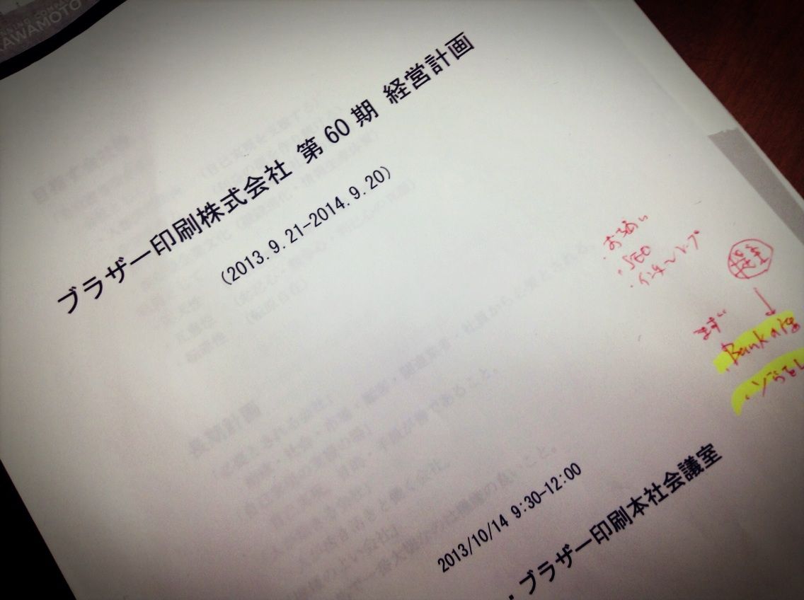 明日10月14日の経営計画発表会に向けて、資料づくりに出社。