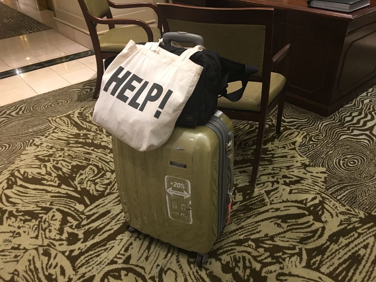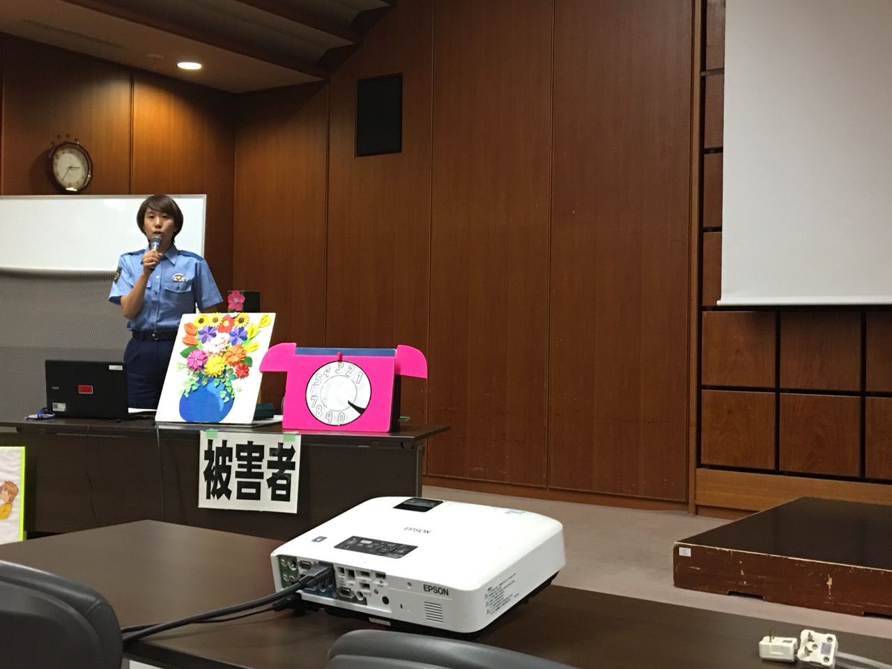 【スズキ担当:カホン】写真、お辞儀をするスズキ君の足元にある「箱」。