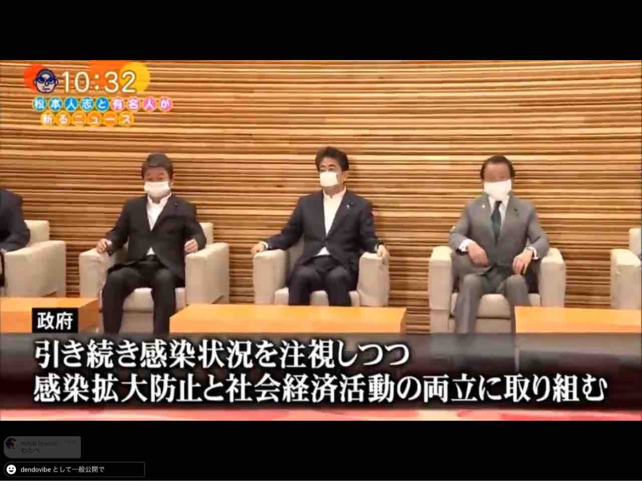 顔の小さな麻生さんが大きなマスク。