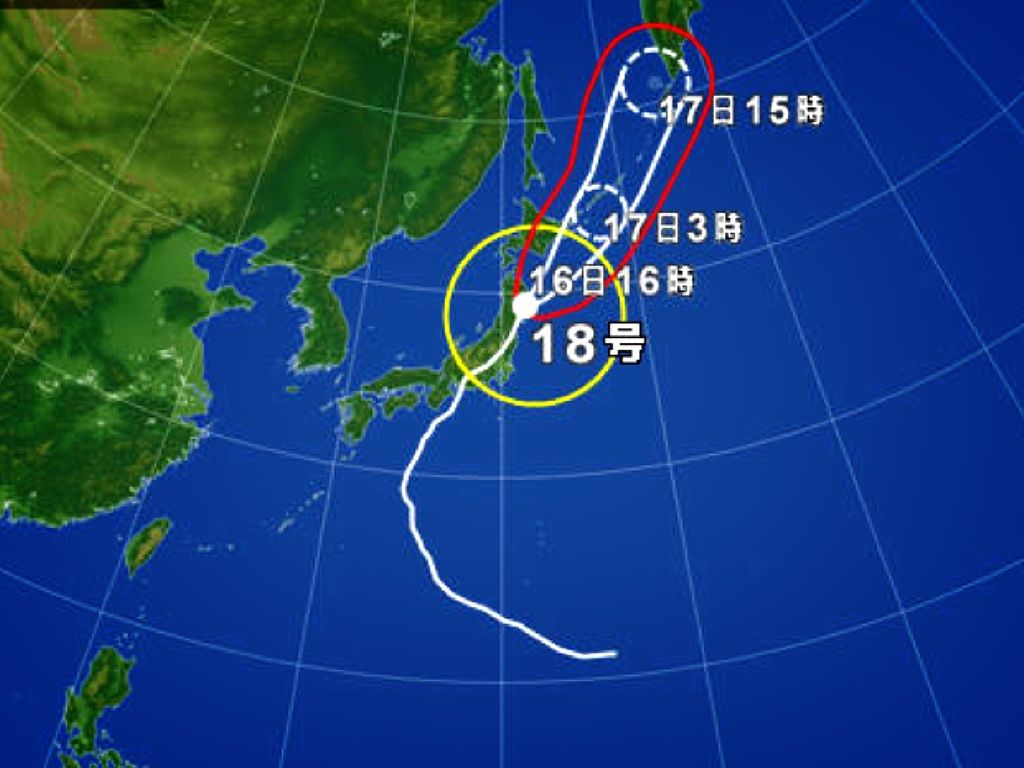 台風18号はその頃、北海道あたりへ。