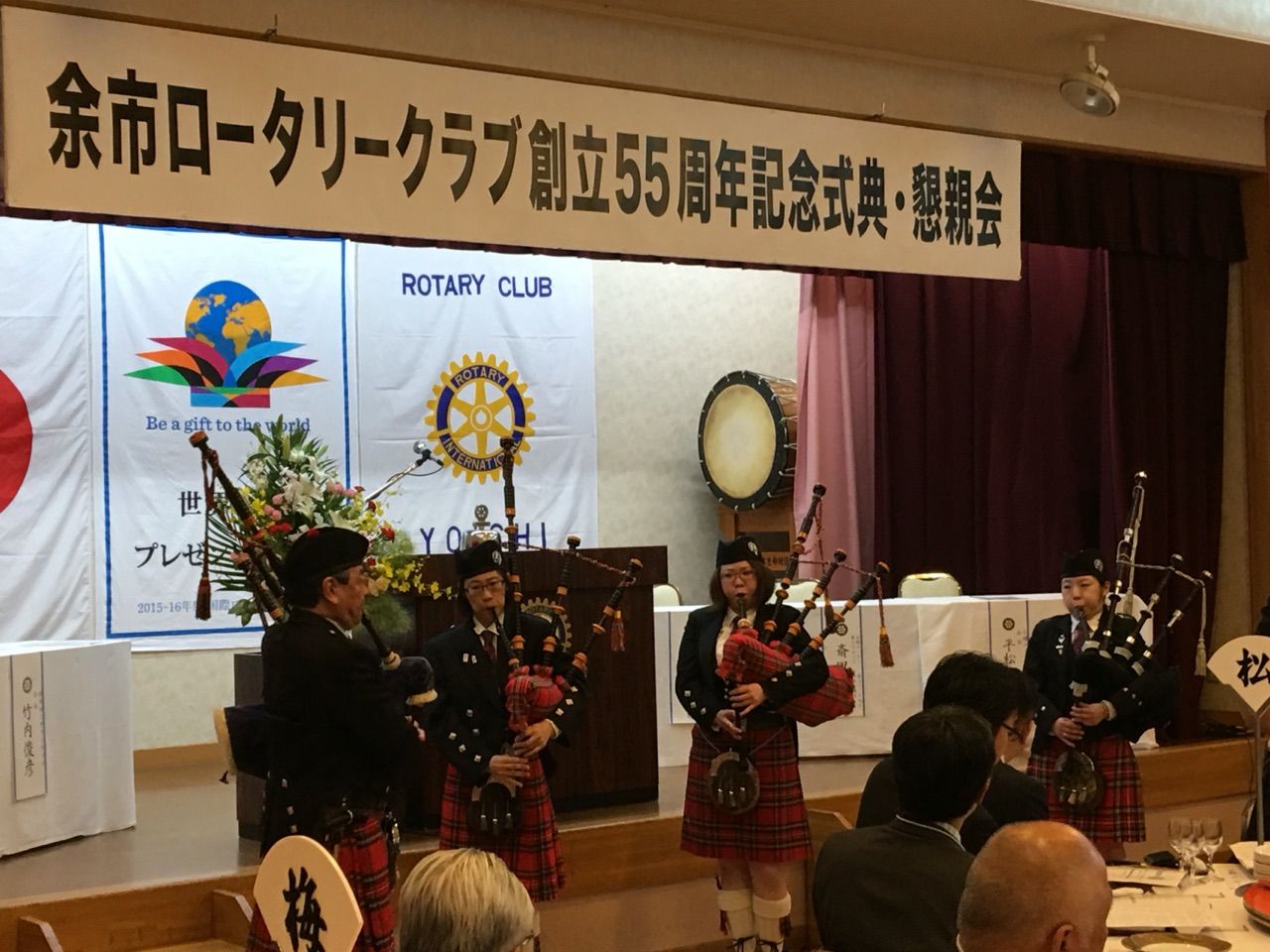 余市ロータリークラブ創立55周年記念式典にやって来たのは、北海道余市郡余市町。我が岡崎城南RC、会津若松城南RC(姉妹提携クラブ)、余市RC(友好クラブ)の3クラブは、各々の周年行事に押しかけ?周年記念を慶び会う。