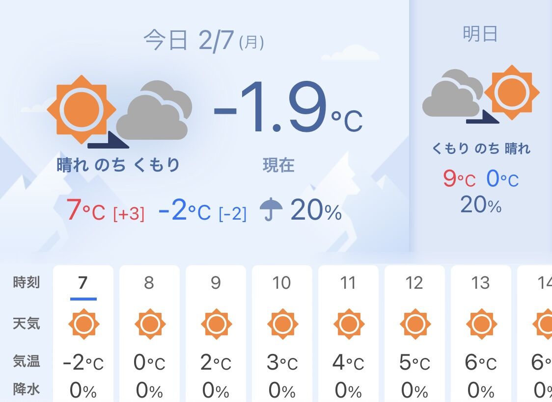 お天気は、-1.9°C。