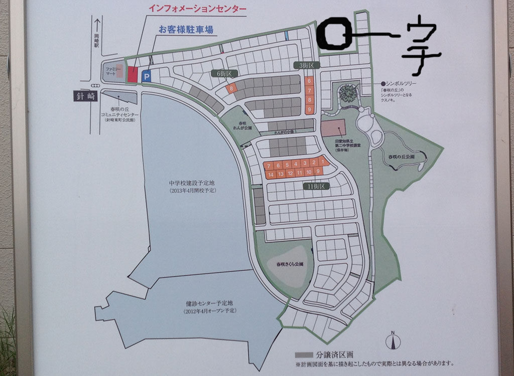 午後、駅前まで用足しに行った帰り、開発の進んでいるご近所の住宅街(予定地)を通って帰った。220戸建設予定のうち約80戸が着工、完成してもう住んでいる住宅もある。